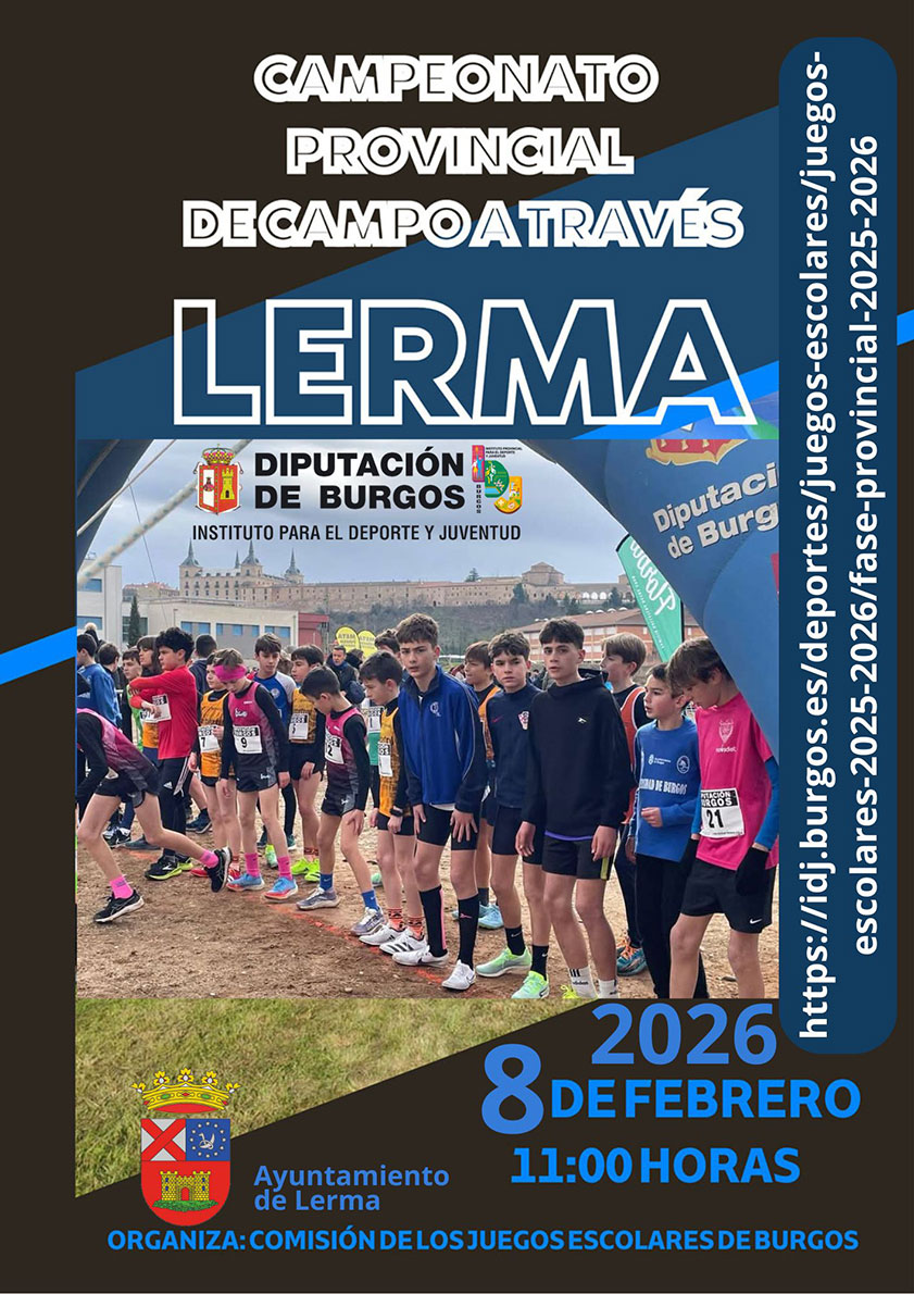 El Recinto Ferial de Lerma acogerá el próximo domingo, 8 de febrero, a partir de las 11:00 horas, el Campeonato Provincial de Cross Escolar, prueba que además forma parte del Circuito de Campo a Través Escolar como su quinta cita puntuable de la temporada.