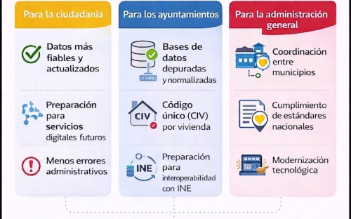 La subvención no contempla la actualización automática de los programas de padrón de cada ayuntamiento. Los datos depurados y normalizados se generan como entregables que cada municipio podrá integrar posteriormente con su proveedor de software de padrón, según su propio calendario y necesidades. Por lo tanto, no habrá cambios inmediatos visibles para los ciudadanos.