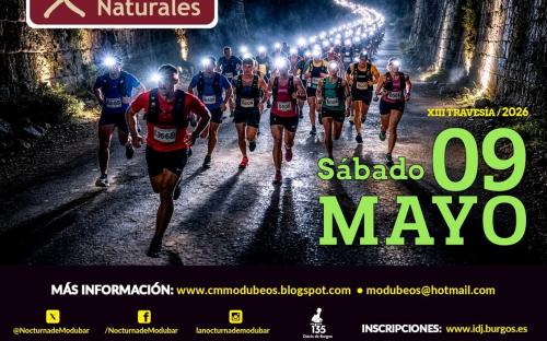 La XIII Nocturna de Modúbar - Caminos Naturales, cuyo recorrido volverá a unir Burgos capital y Modúbar de la Emparedada a través del Camino Natural Santander-Mediterráneo, se celebrará el sábado 9 de Mayo.