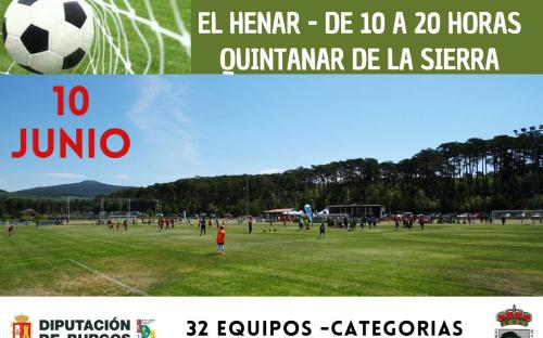 El próximo sábado día 10 de junio, de 11:00 a 19:00 horas, se celebrará la fase final del XVII Circuito Provincial Escolar de Fútbol 7 en el Campo "El Henar" de Quintanar de la Sierra, para determinar los campeones del Circuito de cada categoría: Pre benjamín, Benjamín, Alevín, Infantil masculino e Infantil femenino.