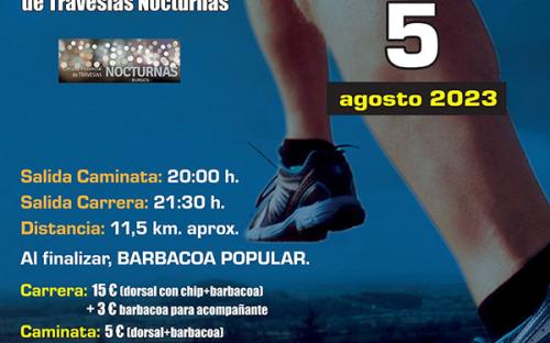 La prueba de senderismo comenzará a las 20:00 h. sobre una ruta circular de 11,5 km. La carrera, con el mismo recorrido, comenzará a las 21:30 h. Al finalizar se celebrará una barbacoa popular.
