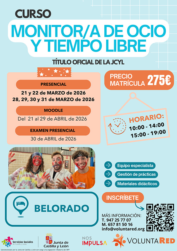 Belorado acogerá en la primavera de 2026 un Curso de Monitor de Ocio y Tiempo Libre dirigido a jóvenes mayores de 18 años, una acción formativa orientada a la capacitación de personas interesadas en el ámbito educativo y del tiempo libre, con especial proyección hacia el trabajo con infancia y juventud.