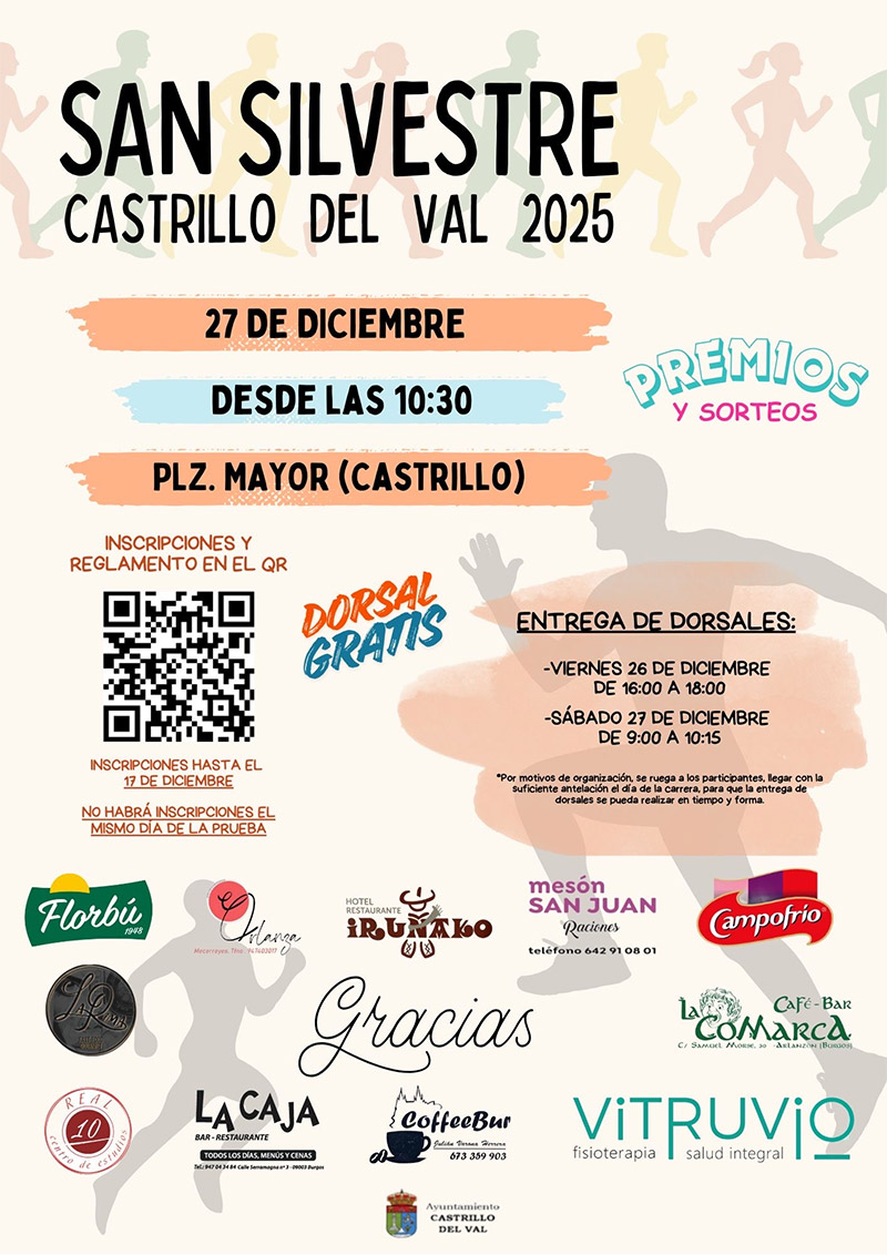 El municipio de Castrillo del Val celebrará el 27 de diciembre una nueva edición de la San Silvestre 2025, una prueba popular y gratuita que reunirá a deportistas de todas las edades en una jornada marcada por el ambiente navideño. La organización centralizará la entrega de dorsales, así como la salida y la meta, en la Plaza Mayor.
